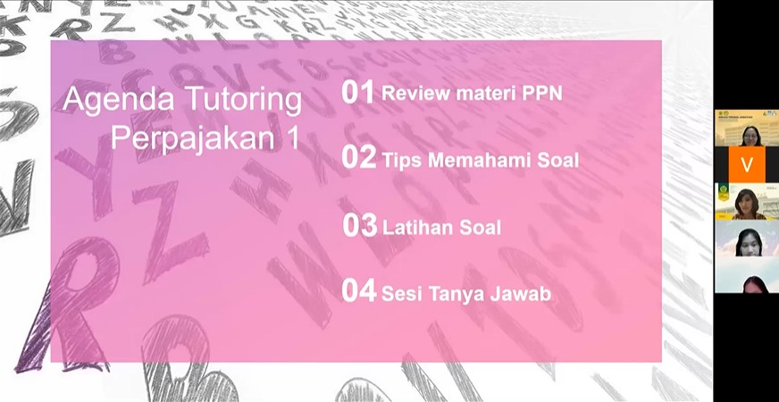 Tutoring I 2022 merupakan salah satu program kerja yang diadakan oleh Departemen Akademik dari Himpunan Mahasiswa Program Studi Akuntansi (HMPSA) UNPAR di mana mahasiswa yang memiliki kesulitan dalam memahami materi perkuliahan dapat dibantu oleh sesama mahasiswa lainnya yang telah lulus dan mempunyai kemampuan lebih dalam mata kuliah tersebut. Tutoring I 2022 dengan tema “An Investment in Knowledge Pays the Best Interest” ini bersifat terbuka bagi semua mahasiswa/i Akuntansi UNPAR dan dilaksanakan secara online dari tanggal 9 Mei 2022 – 16 Juni 2022 melalui platform Zoom Meeting yang diselingi juga dengan video pembelajaran. Kelas yang dibuka di Tutoring I 2022 ini adalah kelas Akuntansi Keuangan Menengah I (diselenggarakan setiap hari Senin dengan jumlah 39 peserta), Akuntansi Biaya (diselenggarakan setiap hari Rabu dengan jumlah 33 peserta), dan Perpajakan I (diselenggarakan setiap hari Kamis dengan jumlah 36 peserta). Semua kelas tersebut diadakan di luar jam perkuliahan regular, yaitu mulai pukul 16.00 – 17.30 WIB. Tutoring I 2022 juga melaksanakan kegiatan special class khusus untuk persiapan Ujian Akhir Semester dari tanggal 13 Juni 2022 – 16 Juni 2022 yang diajarkan secara langsung oleh dosen mata kuliah yang bersangkutan di luar jam kelas biasa, yaitu oleh Ibu Dr. Muliawati, S.E., M.Si., Ak., CA. untuk mata kuliah Akuntansi Keuangan Menengah I, Ibu Michelle Kurniawan, S.E., M.Ak., CA., CPRM., CSEP., CertDA. untuk mata kuliah Akuntansi Biaya, dan Ibu Puji Astuti Rahayu, S.E., Ak., M.Ak., CA., CertDA untuk mata kuliah Perpajakan I.