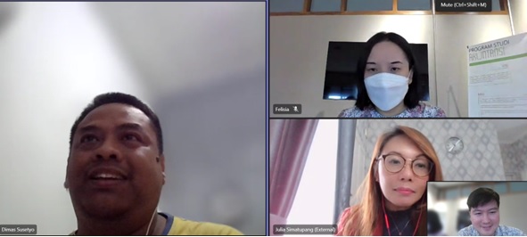 Pada hari Selasa, 31 Januari 2023, Prodi Akuntansi berdiskusi dengan ACCA secara online. Pihak dari Prodi Akuntansi yang hadir adalah Ibu Dr Sylvia Fettry Maratno, SE., SH., M.Si., Ak. selaku Ketua Jurusan Ilmu Akuntansi, Ibu Felisia, SE., M.Ak., CMA. selaku Ketua Program Studi Akuntansi, Bapak Michael, SE., M.Ak., CMA., PFM. selaku Pjs Kepala Lab Akuntansi serta Bapak Tanto Kurnia ST., M.Ak selaku koordinator mata kuliah Data Analitik. Adapun, dari pihak ACCA telah hadir Bapak Dimas Susetyo selaku Business Relation Manager serta Ibu Julia Simatupang selaku Country Manager ACCA. Adapun, dalam diskusi hari ini disampaikan bahwa akan dilakukan kembali program sertifikasi CertDA, yang mana peserta yang mengikuti CertDA adalah mahasiswa yang telah mengikuti mata kuliah Data Analitik, yang mana kurikulumnya telah mengikuti silabus internasional sesuai dengan kurikulum data analitik ACCA Global.