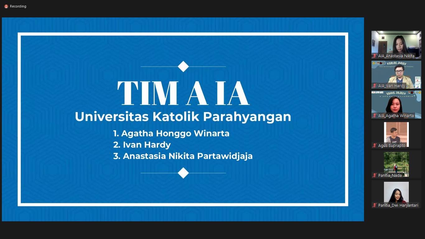 The Accounting Competition Team of the Accounting Study Program of UNPAR’s Faculty of Economics has deployed three teams to participate in the Veteran Accounting Festival (VIRAL) event organized by Universitas Pembangunan Nasional “Veteran” Yogyakarta. The event lasted for 3 days (September 5, September 11, and September 12, 2021). The VIRAL competition was attended by 100 teams that registered from various universities in Indonesia. The elimination round was held online on September 5, 2021. Three teams from the Accounting Study Program, namely Triple Pumpkin, the AIA team, and the SME team, made it to the semi-final stage. On September 11, 2021, the semi-final round was held online, and the AIA team made it to the final round. On September 12, 2021, the AIA team consisting of Ivan Hardy, Anastasia Nikita P., and Agatha Honggo Winarta won the 2nd place title. Hopefully, this competition will be something that can encourage UNPAR students to be more enthusiastic about learning and making achievements.