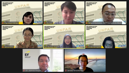 Kemudian dilanjutkan dengan sesi kedua yang dihadiri oleh narasumber yang terdiri dari Ibu Suci Kurnia (Business Development Executive ICAEW Indonesia), Bapak I Komala Widjaja (Assurance Services Partner EY Indonesia), Bapak Ronald Tanuraharja (Senior Cyber Security Advisor/Architect – University of Melbourne), Bapak Willy D. Kusnanto, ST., MM., MAPPI (Cert.) Pengurus Komite Ujian Sertifikasi Penilai (KUSP) – Masyarakat Profesi Penilai Indonesia, Ibu Anita Salim (Senior Manager HRD – PT Djarum Indonesia, Tbk), Bapak Dwi Putra Widiyanto (Country Manager CIMA Indonesia), Ibu Mulky Belladina (Business Development Specialist – Management Accounting CIMA Indonesia), Ibu Michele Natalie (Internal Audit Executive – PT Nutrifood Indonesia), dan Bapak Christian Fernando Kevin (Corporate Planning Analyst – PT Astra International Tbk).