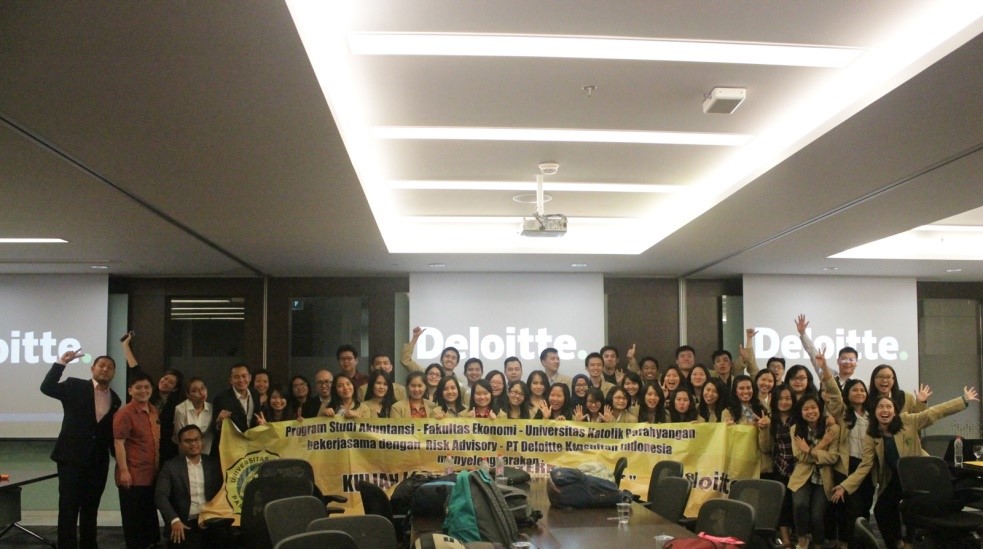 Program Studi Akuntansi Fakultas Ekonomi Universitas Katolik Parahyangan bekerja sama dengan PT Deloitte Konsultan Indonesia – Risk Advisory menyelenggarakan kuliah lapangan dengan topik Internal Audit. Acara ini dilaksanakan di kantor PT Deloitte Konsultan Indonesia, yaitu di The Plaza lantai 32, Jakarta pada hari Kamis tanggal 1 September 2016. Acara ini diikuti oleh dihadiri oleh 40 orang mahasiswa dari kelas Seminar Audit Manajemen dan kelas Seminar Audit Keuangan dengan didampingi oleh lima orang dosen pendamping. Acara ini diprakarsai oleh Bapak Brian Indradjaja selaku Country Risk Advisory Leader – PT Deloitte Konsultan Indonesia. Acara ini merupakan wujud kepedulian PT Deloitte Konsultan Indonesia – Risk Advisory pada kemajuan generasi muda Unpar. Kegiatan ini dibuka oleh Bapak Vidvant Brahmantyo selaku Associate Director – Risk Advisory yang menyampaikan sambutan pada seluruh peserta. Kuliah Lapangan ini terbagi ke dalam 4 sesi.