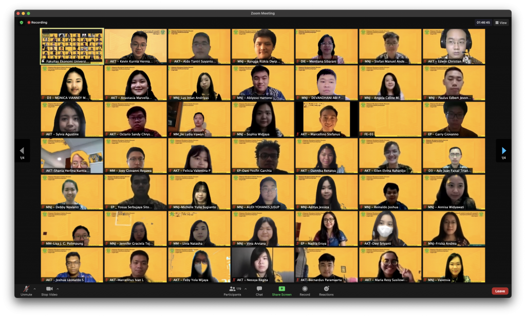 Jumat, 9 April 2021 FE UNPAR telah menyelenggarakan acara pelepasan wisudawan dari Program Studi Sarjana Akuntansi, Program Studi Sarjana Ekonomi Pembangunan, Program Studi Sarjana Manajemen, dan Diploma III Manajemen Perusahaan. Acara ini diselenggarakan dengan menggunakan platform zoom. Rangkaian acara pelepasan wisudawan terdiri dari: Doa pembuka, menyanyikan lagu Indonesia Raya, sambutan dari Ibu Dr. Budiana Gomulia, Dra., M.Si (Dekan FE UNPAR), menyanyikan lagu Hymne UNPAR, Mars FE, penyampaian kesan dan pesan dari wisudawan terbaik keempat Program Studi, Ucapan terima kasih untuk dosen dan orang tua, penutupan oleh Bapak Ivan Prasetya, SE., MSM., M.Eng (Wakil Dekan Bidang Kemahasiswaan dan Alumni), dan pembekalan wisudawan dari masing-masing Program Studi.