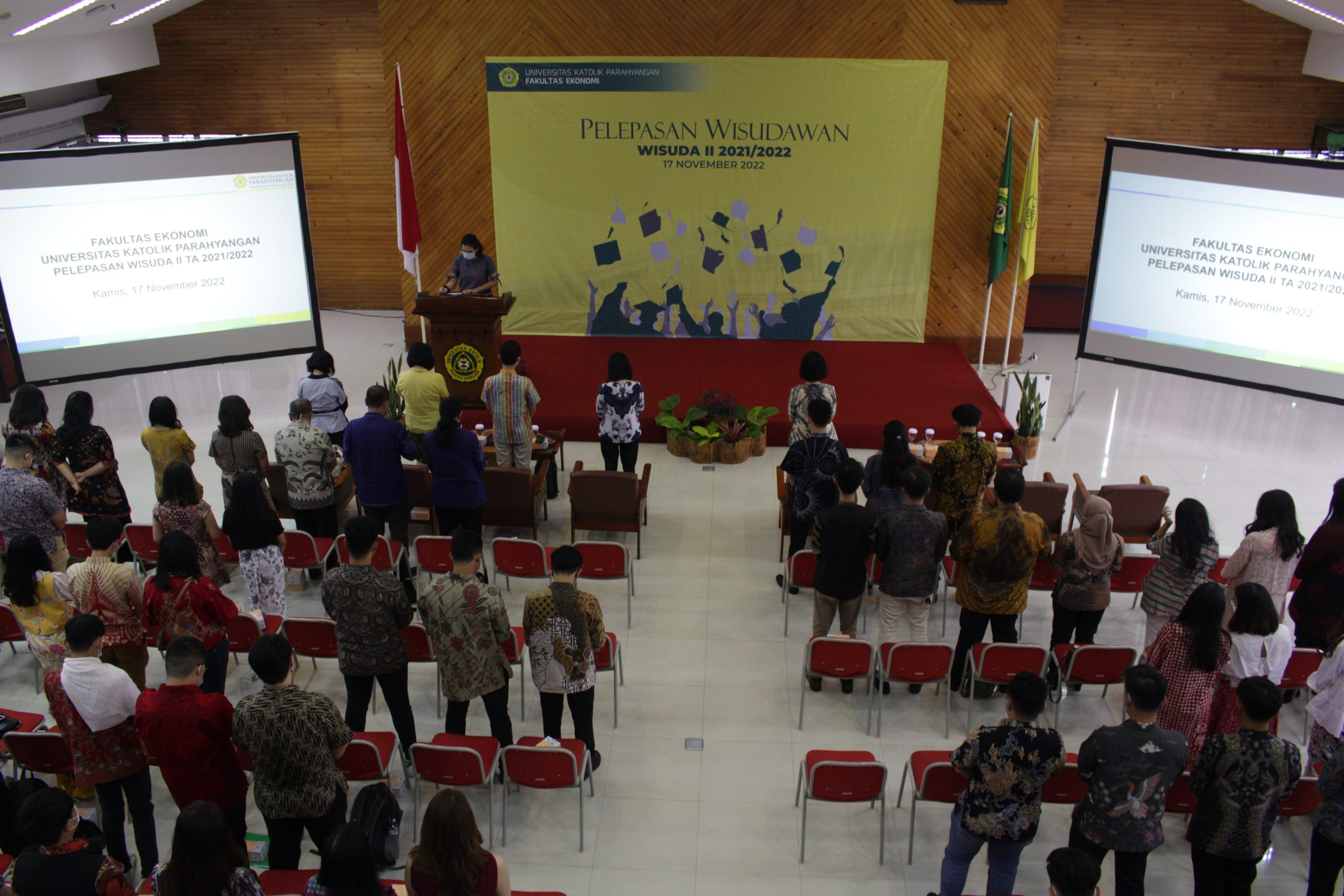 Pada hari Kamis, 17 November 2022 diadakan acara pelepasan wisudawan Program Studi Sarjana Akuntansi. Adapun, proses wisudanya sendiri diadakan pada hari Jumat, 18 November 2022. Acara pelepasan ini diadakan di lantai 8 Gedung 9 Fakultas Ekonomi UNPAR. Pada kesempatan kali ini, terdapat 76 mahasiswa dari Program Studi Sarjana Akuntansi yang mengikuti acara pelepasan. Dalam sesi khusus pelepasan dengan calon lulusan Prodi Sarjana Akuntansi, telah hadir Bapak Akash Kanaya Thawani, S.E. serta Bapak Agustinus Susilo, S.E., Aff.WM., AMA., AWM., Ak., CMA., BKP., CA., M.Ak. selaku dosen, alumni, serta wirausahawan dan profesional di bidangnya untuk memberikan sesi pendalaman kepada para calon wisudawan. Para calon wisudawan diberikan bekal tentang bagaimana kiat-kiat terjun ke dalam dunia pekerjaan atau dunia profesional kelak. Para calon wisudawan mengikuti sesi pelepasan ini dengan antusias, diliputi rasa haru dan bangga. Pelepasan pada sesi khusus Prodi Sarjana Akuntansi ini dibuka oleh Ibu Felisia, SE., M.Ak (Ketua Program Studi S1 Akuntansi – FE UNPAR) dan ditutup oleh Ibu Dr.Sylvia Fettry Elvira M, SE., SH., M.Si., Ak (Ketua Jurusan Akuntansi – FE UNPAR).