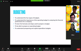 Para mahasiswa mendapatkan berbagai pengalaman ilmu dengan berbagai topik terkini yang relevan bagi lomba dan masa depan tim lomba tersebut dalam memasuki dunia kerja. Pada hari Selasa, tanggal 3 Agustus 2021, dilangsungkan satu pembekalan secara online dengan mengundang Ibu Velda Fidelia. Beliau memiliki pengalaman bekerja yang sangat mendalam di bidang perhotelan. Sudah lebih dari 12 tahun, beliau menggeluti dunia perhotelan, yang dimulai sebagai Assistant Manager Credit pada Hotel Indonesia Kempinski Jakarta. Setelah itu beliau sempat bekerja pada beberapa hotel besar lainnya, seperti Trans Luxury Hotel Bandung, InterContinental Bandung. Pada saat ini, beliau menjabat sebagai Director of Finance & Room Division Manager pada Hotel Mercure Bandung City Center.
