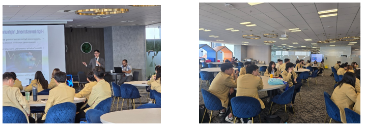 Suasana sesi pagi berjalan sangat interaktif. Para mahasiswa menunjukkan antusiasme yang tinggi dengan aktif melontarkan pertanyaan-pertanyaan kritis dan relevan. Tingginya minat para peserta diapresiasi secara khusus oleh KPMG, yang memberikan hadiah kepada tiga mahasiswa dengan pertanyaan terbaik. Hal ini tidak hanya memotivasi tetapi juga mendorong diskusi yang lebih hidup dan mendalam. Memasuki tengah hari, kegiatan diisi dengan istirahat dan makan siang bersama di area salah satu tempat makan dekat KPMG dengan menggunakan MRT. Tentu saja pengalaman ini menjadi pengalaman tambahan dalam jika mahasiswa lulus dan bekerja di KPMG bisa lebih mengetahui lingkungan kantor KPMG. Selanjutnya, sesi siang dibuka dengan sambutan hangat dari Ibu Kusumaningsih Angkawidjaja, selaku Senior Partner di KPMG. Dalam sambutannya, beliau menekankan pentingnya kolaborasi antara dunia pendidikan dan industri untuk mencetak talenta-talenta unggul di masa depan. Sebagai ucapan terima kasih Program Studi Sarjana Akuntansi Universitas Katolik Parahyangan pada pihak KPMG atas kerjasamanya selama 5 tahun terakhir dalam pelaksanaan kelas Audit Industri Spesifik maka memberikan sedikit plakat ucapan terima kasih yang diserahkan oleh Ibu Dr Amelia Setiawan,CISA pada Ibu Kusumaningsih Angkawidjaja.