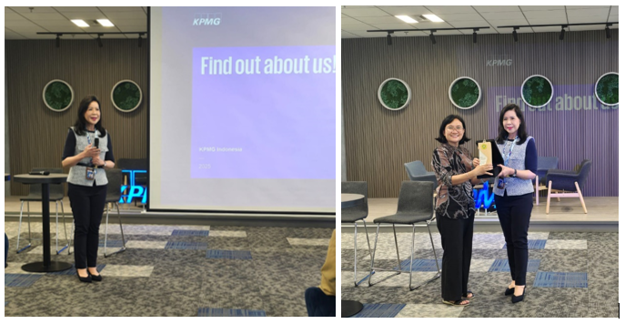 Suasana sesi pagi berjalan sangat interaktif. Para mahasiswa menunjukkan antusiasme yang tinggi dengan aktif melontarkan pertanyaan-pertanyaan kritis dan relevan. Tingginya minat para peserta diapresiasi secara khusus oleh KPMG, yang memberikan hadiah kepada tiga mahasiswa dengan pertanyaan terbaik. Hal ini tidak hanya memotivasi tetapi juga mendorong diskusi yang lebih hidup dan mendalam. Memasuki tengah hari, kegiatan diisi dengan istirahat dan makan siang bersama di area salah satu tempat makan dekat KPMG dengan menggunakan MRT. Tentu saja pengalaman ini menjadi pengalaman tambahan dalam jika mahasiswa lulus dan bekerja di KPMG bisa lebih mengetahui lingkungan kantor KPMG. Selanjutnya, sesi siang dibuka dengan sambutan hangat dari Ibu Kusumaningsih Angkawidjaja, selaku Senior Partner di KPMG. Dalam sambutannya, beliau menekankan pentingnya kolaborasi antara dunia pendidikan dan industri untuk mencetak talenta-talenta unggul di masa depan. Sebagai ucapan terima kasih Program Studi Sarjana Akuntansi Universitas Katolik Parahyangan pada pihak KPMG atas kerjasamanya selama 5 tahun terakhir dalam pelaksanaan kelas Audit Industri Spesifik maka memberikan sedikit plakat ucapan terima kasih yang diserahkan oleh Ibu Dr Amelia Setiawan,CISA pada Ibu Kusumaningsih Angkawidjaja.