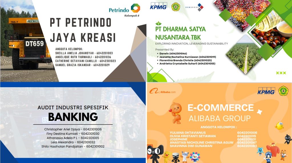 Pada hari Rabu, 15 Oktober 2025, diadakan pertemuan Ke-7 dari Mata Kuliah Pilihan Audit Industri Spesifik yang diadakan oleh Prodi Akuntansi Universitas Katolik Parahyangan dengan kerja sama dengan Kantor Akuntan Publik KMPG. Perkuliahan dimulai pada pukul 12.30 WIB di ruang Smart Clasroom ruangan 9714 lantai 7 Gedung 9 Universitas Katolik Parahyangan. Pertemuan perkuliahan dilakukan secara luring tetapi juga dihadiri secara daring oleh Bapa Indra Wijaya selaku Partner Audit KPMG Indonesia sekaligus tim KPMG. Pada pertemuan kali ini sangatlah spesial ketimbang pertemuan – pertemuan yang lampau, karena di pertemuan kali ini bukan Tim KPMG yang memberikan paparan materi tentang suatu industri spesifik. Tapi di pertemuan kali ini diisi dengan presentasi materi – materi yang telah dijelaskan sebelumnya yang dipresentasikan oleh Mahasiswa – Mahasiswi yang merupakan bagian dari perkuliahan Audit Industri Spesifik