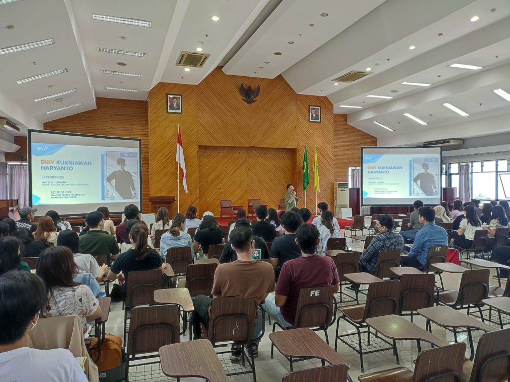 DNA merupakan program unggulan yang dirancang khusus untuk mahasiswa yang berprestasi dari 3 Perguruan Tinggi terpilih, salah satunya adalah UNPAR. Program magang ini didesain untuk berjalan selama 6 bulan , dimana mahasiswa akan mendapatkan seminar, workshop, dan terjun langsung di dunia kerja. Manfaat yang akan diperoleh mahasiswa dengan mengikuti program DNA ini antara lain: uang saku, BPJS tenaga kerja, softskill: self and managerial, technical knowledge, dan networking dari 3 Perguruan Tinggi. Acara sosialisasi ini diselenggarakan pada Hari Jumat, 12 Mei 2023 di Aula Gedung Fakultas Ekonomi UNPAR (FE). Acara ini diawali dengan pemberian kata sambutan oleh Ibu Brigita Meylianti S., Ph.D., ASCA., CIPM (Ketua Jurusan Ilmu Manajemen) dan dilanjutkan dengan pemaparan mengenai program DNA oleh Bapak Diky Kurniawan (Marketing Research Regional Bandung). Dengan terselenggaranya acara ini diharapkan mahasiswa Fakultas Ekonomi UNPAR dapat memperoleh pemahaman dan mendapatkan kesempatan untuk mengikuti program MBKM di perusahaan Djarum.