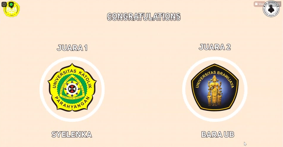 Pada tanggal 2 – 3 Oktober 2020, Tim Lomba Akuntansi Unpar yang diwakili oleh Michele Natalie (2017130005), Helen Wijaya Chandra (2017130026), dan Kevin Kurnia Hermawan (2017130036) berhasil meraih peringkat pertama pada kegiatan Pekan Ilmiah Akuntansi (PIA). PIA merupakan perlombaan Akuntansi berskala nasional yang diselenggarakan oleh Himpunan Mahasiswa Jurusan Akuntansi Fakultas Ekonomi dan Bisnis Universitas Jenderal Soedirman. PIA tahun ini mengangkat tema “Enrich Your Accounting Skills to Develop Competitive Generation”. Sebelumnya, seluruh tim yang mendaftar melakukan online preliminary pada tanggal 5 September 2020. Kemudian 15 tim dengan nilai tertinggi lolos ke babak semifinal yang terdiri dari 3 sesi, yaitu Individual Battle, Team Battle, dan Tap Tap Battle. Tiga tim dengan perolehan nilai tertinggi dari total keseluruhan sesi pada babak semifinal akan lolos ke babak grand final dan melakukan presentasi dengan kasus yang diberikan. Peringkat pertama diraih oleh Tim Syelenka dari Universitas Katolik Parahyangan, peringkat kedua diraih oleh Tima Bara UB dari Universtias Brawijaya dan peringkat ketiga diraih oleh Perbanas 1 dari STIE Perbanas.