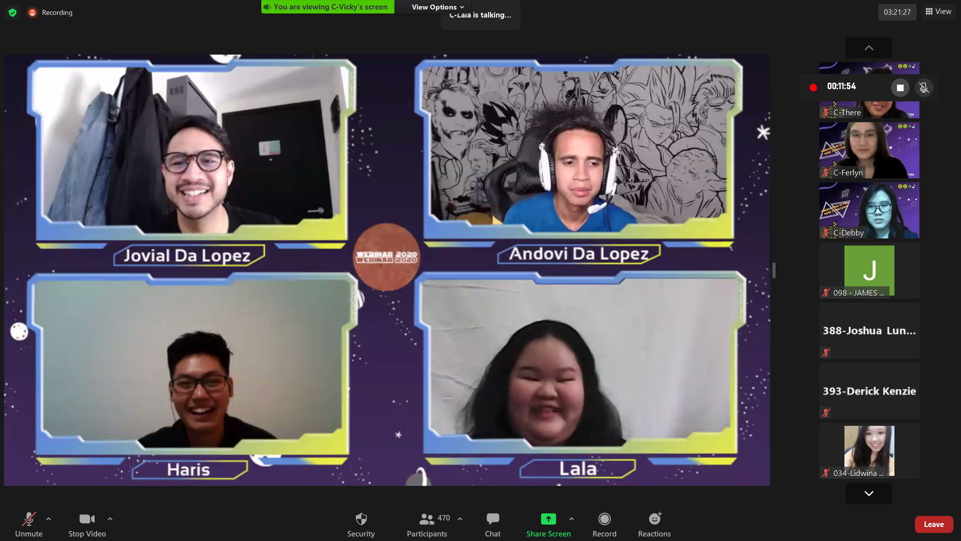 Webinar 2020 juga menghadirkan 2 pembicara yang berbeda bidangnya. Pertama yaitu Kakak Monica Riany dari Shopee Indonesia, yang kedua yaitu Jovial Da Lopez dan Andovi Da Lopez dari SkinnyIndonesian24. Kegiatan ini dihadiri oleh 500 orang termasuk peserta, dosen, dan panitia. Kegiatannya terbagi menjadi 2 sesi, sesi pertama presentasi dan tanya jawab bersama Shopee Indonesia dan sesi kedua talkshow bersama SkinnyIndonesian24.