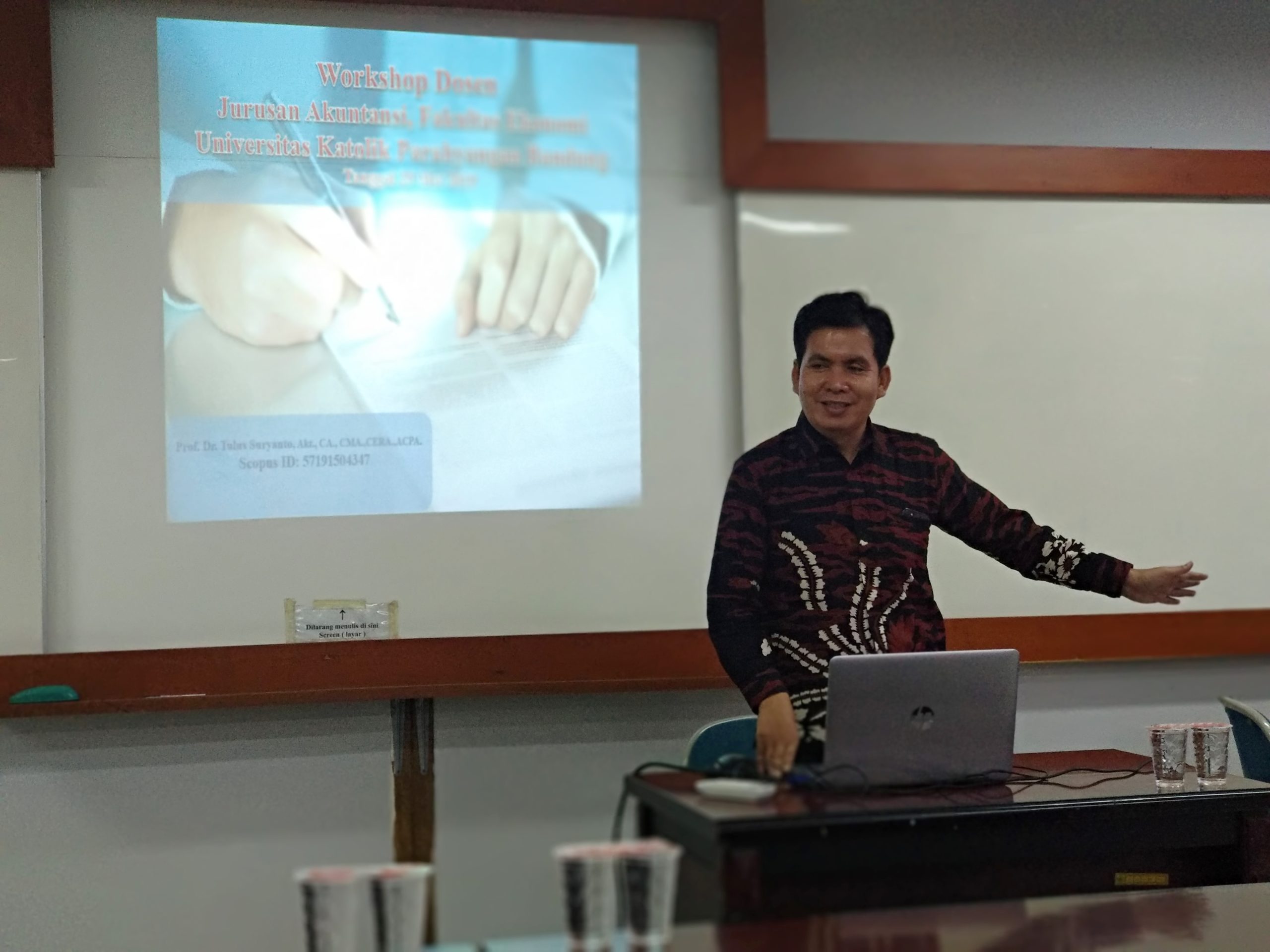 Workshop “Penulisan Artikel pada Jurnal Ilmiah” untuk dosen-dosen Prodi S1 Akuntansi oleh Prof. Dr. Tulus Suryanto pada tanggal 29 Mei 2019